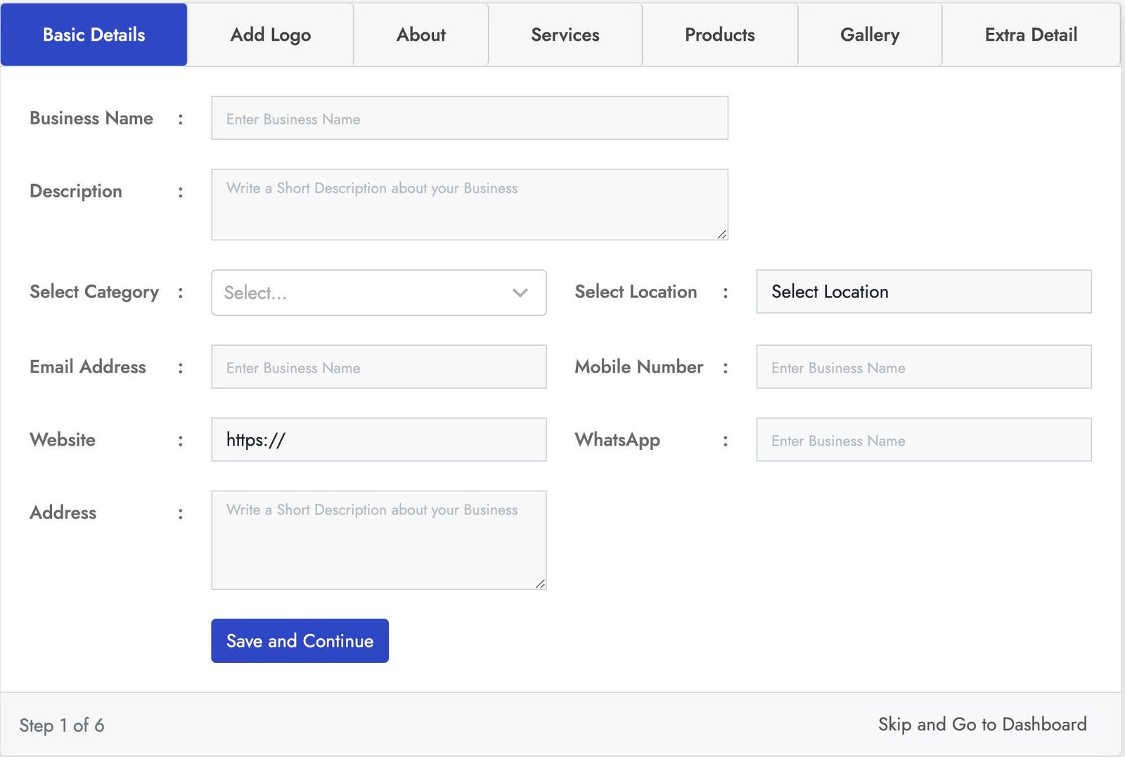 You can crop the user image for best fit. You can add business services using service section and also you can add products of the business using the product section using the product section. With the gallery section you can add images to the business also you can add more details using the Extra Details.