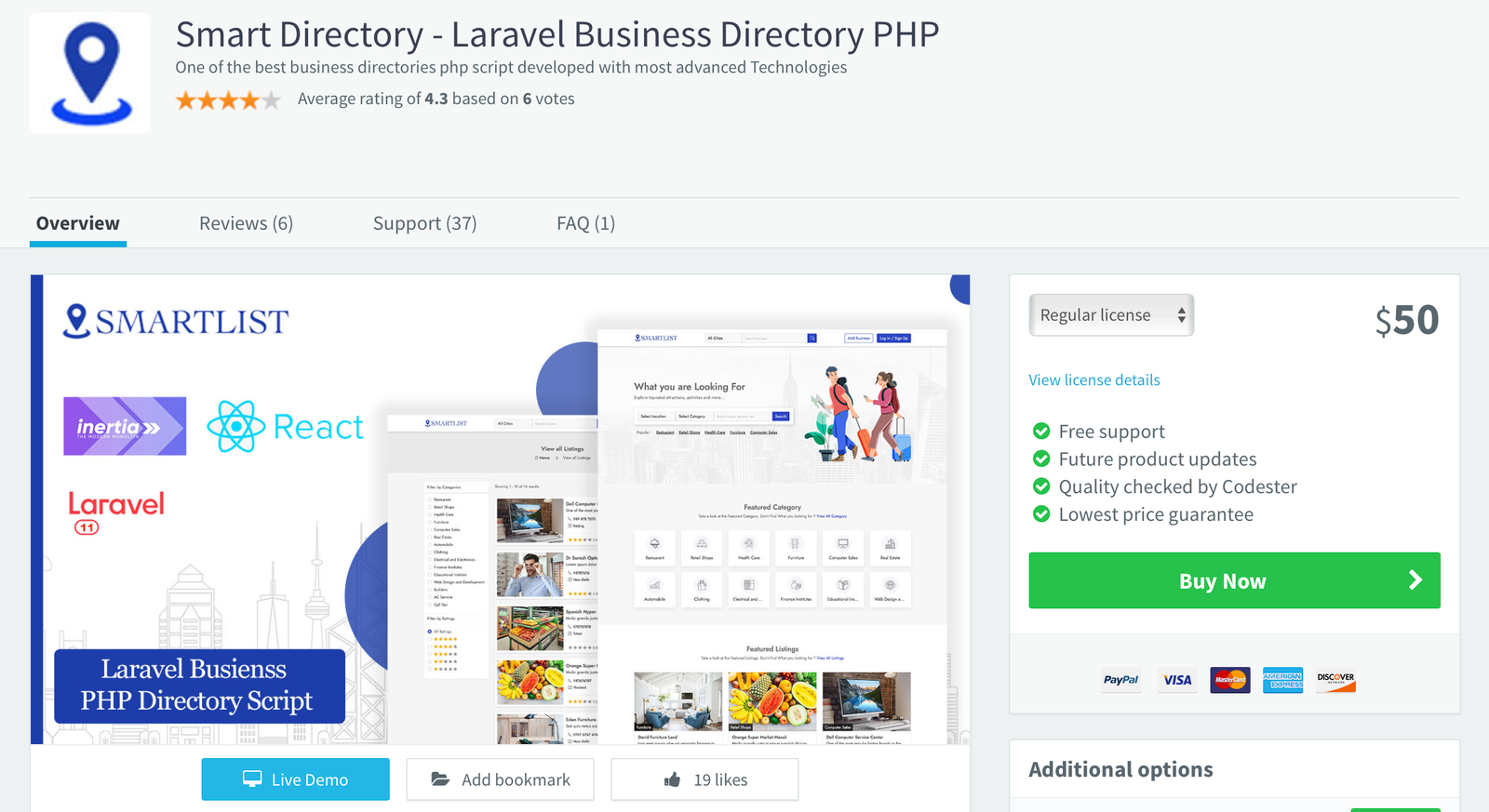 For users who prefer a trusted marketplace, Smart Directory is also available on Codester. If you don’t want to purchase directly from our website or are unsure about buying from an unfamiliar source, you can safely get it from Codester with full buyer protection and secure payment options.