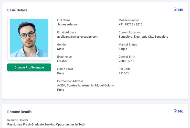 Employers, on the other hand, can fill out company-specific details such as company name, logo, industry, size, website, and a short description. This helps create a trustworthy presence on the platform and improves employer branding. The comprehensive profile form ensures that all relevant data is collected efficiently, making it easier for the system to match candidates with jobs and for employers to stand out to top talent.